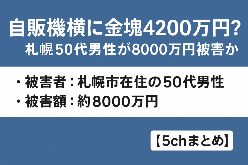 【特殊詐欺】自販機横に金塊4200万円?札幌50代男性が8000万円被害か【5chまとめ】